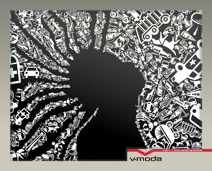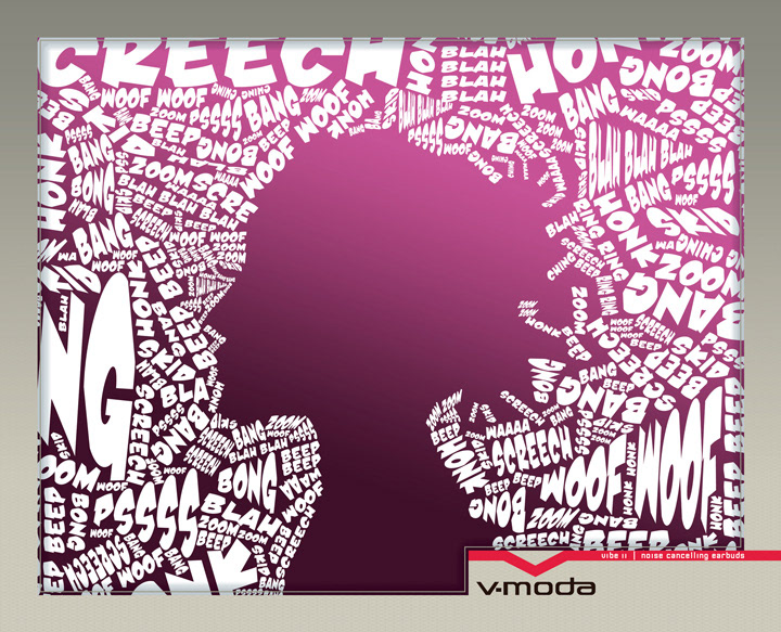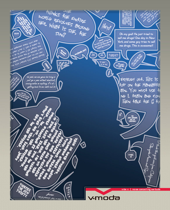 Noise canceling earbuds spec print campaign designed to show customers how they can block out the noise and be themselves.